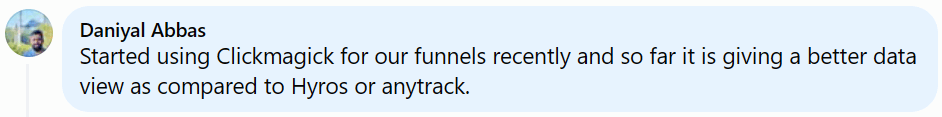 “I've used lots of different tracking tools in the past, and nothing compares to ClickMagick. It's got an extremely easy to