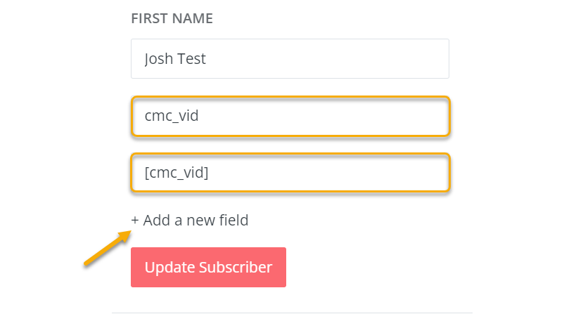 3. Add in cmc_vid for the Field name, and [cmc_vid] for the Field value.
