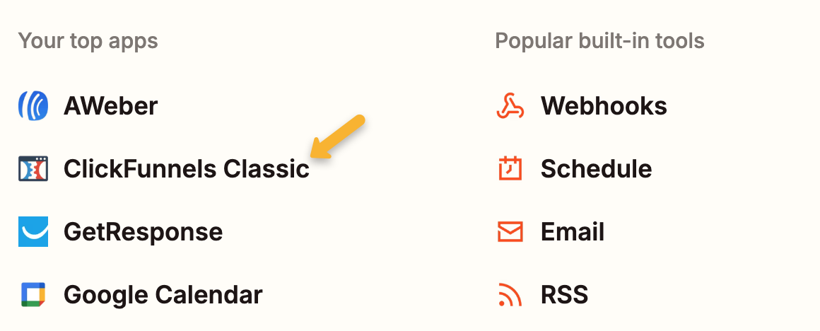 Select whichever app you want to send conversions from. In our example, we’re using ClickFunnels Classic.