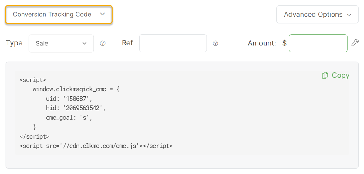 In the example below, we’re tracking the order number as the “ref” value and order subtotal as the amount: