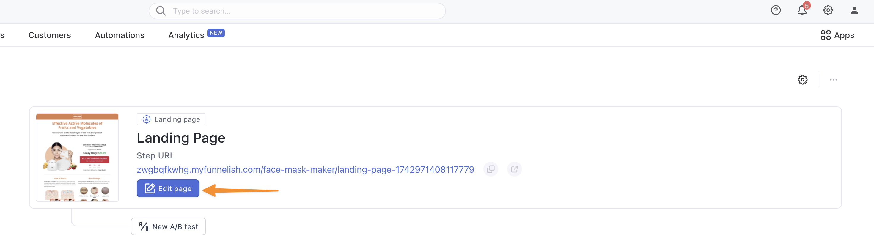 In your Funnelish account, select your funnel, and then click on "Edit page" to edit your landing page.