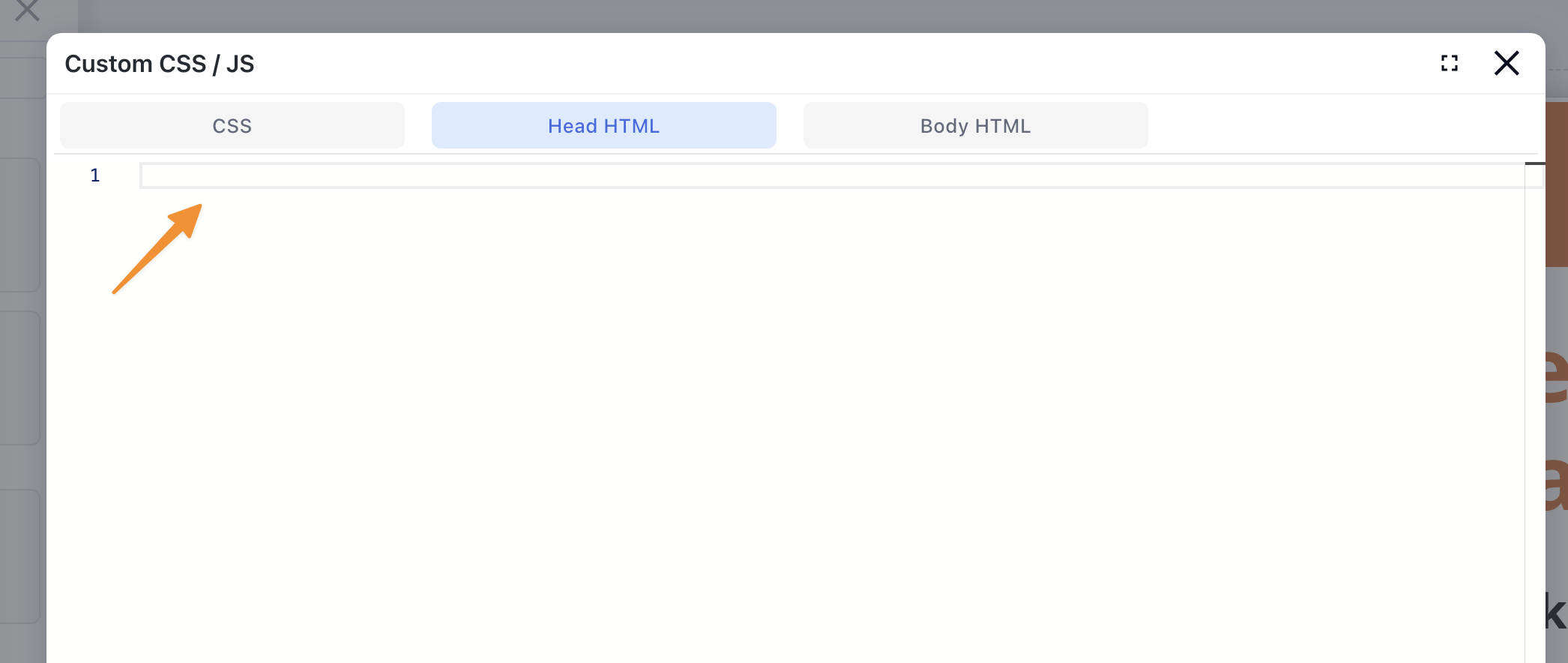Next, in the Custom CSS / JS pop-up, click on the "Head HTML" tab. Paste your Click Tracking Code, and click "Save Changes".