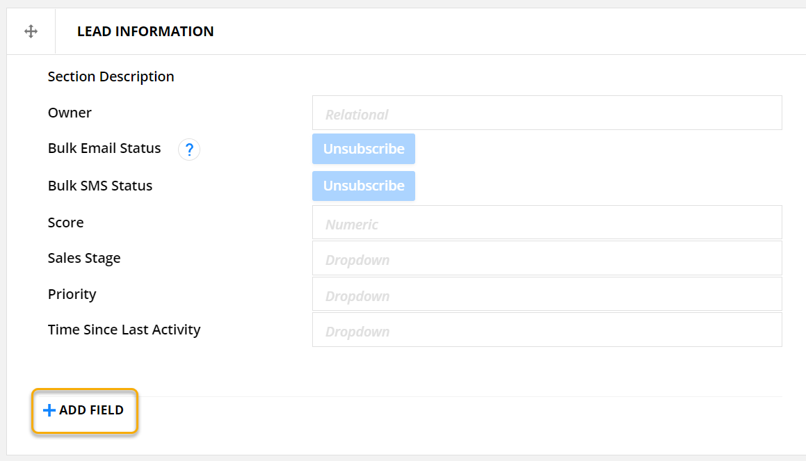 3. Scroll down to the “Lead Information” section and click on “+ Add Field.”
