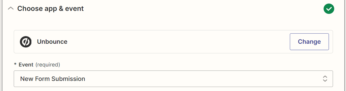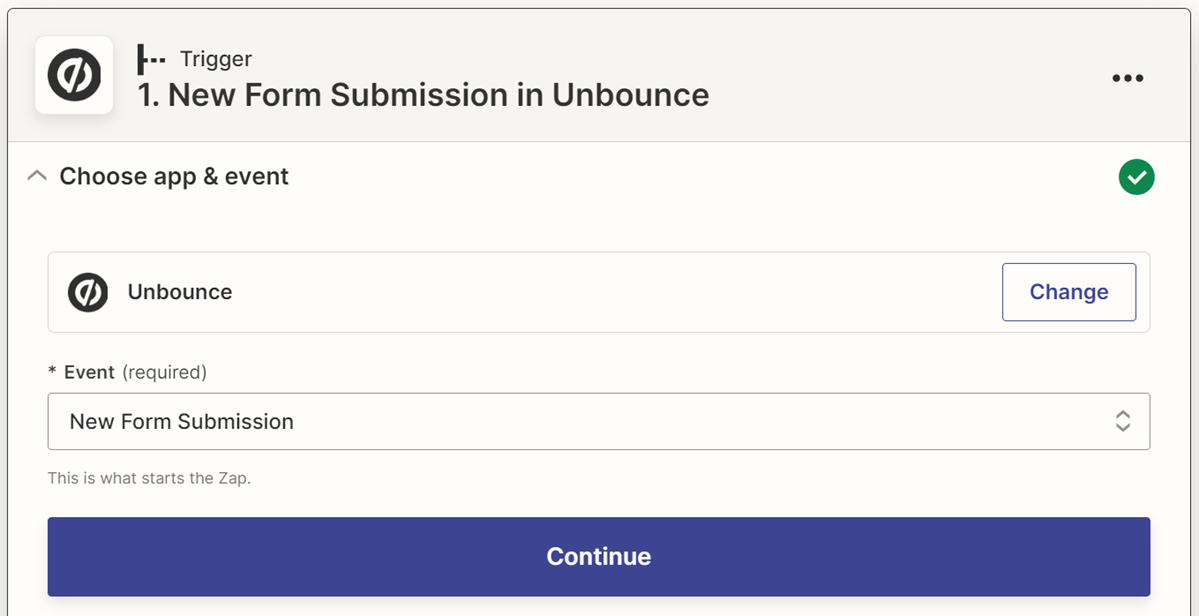 13. Unbounce should take you through creating the Zap right in their app. Give the new zap a name (if you’d like) and then connect your Unbounce account first.