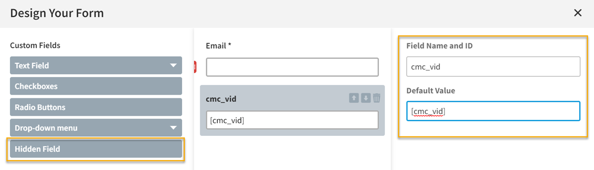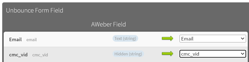 15. Configure the fields to map to the ones in your form. In this case – email should map to email, and cmc_vid should map to “cmc_vid”: