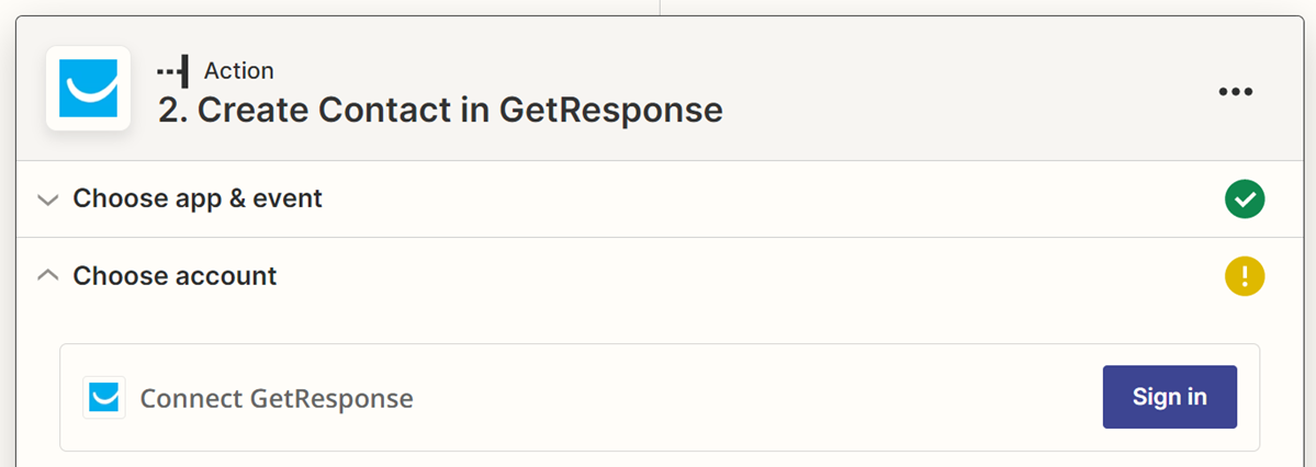 16. Once you connect the account, validate the correct account is selected and click continue to get to the “Set up action” page.