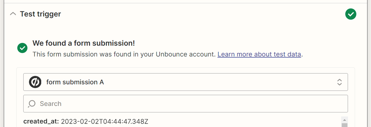 21. Click continue and test the zap. If successful, you will see a message like this: