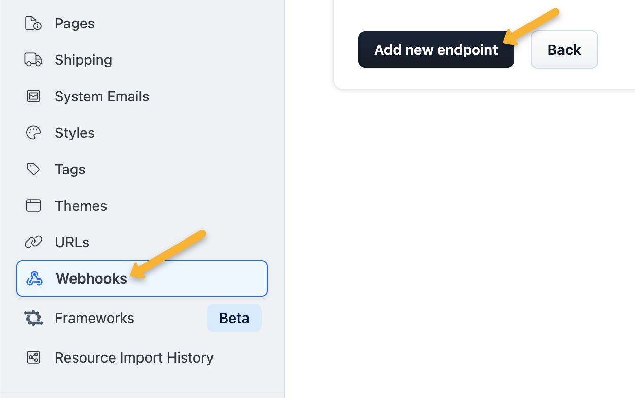 Click on “Webhooks”, then click on “Add new endpoint”.