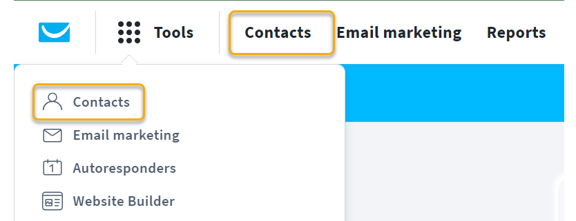 1. In GetResponse, go to your contacts list (this can be done from the Tools menu or right at the top of the page.)