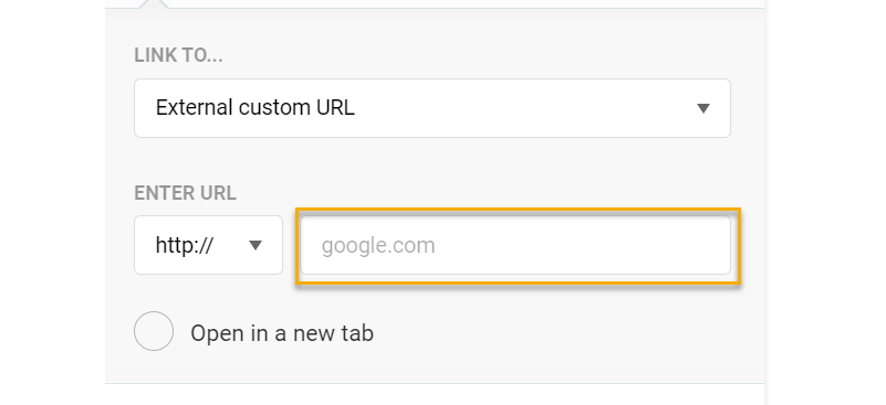 8. Choose “External custom URL” in the Link To… section, add your link, and then choose whether or not you want to open in a new tab.
