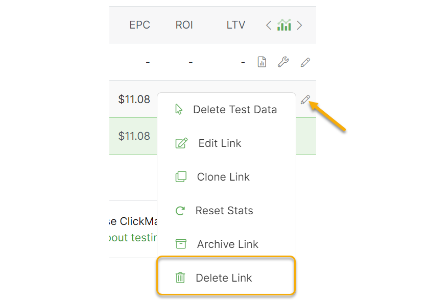 If you want to delete a Smart Link, it’s really simple. Click on the Edit menu to the right of any link and choose “Delete Link” from the drop-down menu.