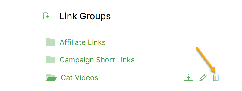 To delete a link group—which does NOT delete the links themselves—go to the Tools menu at the top of every page and select the Group Manager. From there, click on the link group you want to delete and a trash can icon will show up next to the group name. Click on the icon to delete the group.