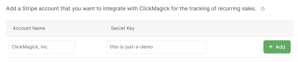Be sure to click “+ Add” to add this Stripe account to ClickMagick, and repeat this process for any other Stripe accounts you want to integrate with ClickMagick.