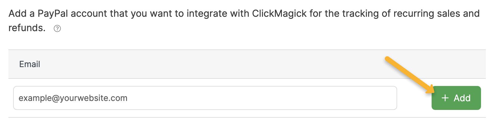 Be sure to click “+ Add” to add this PayPal account to ClickMagick, and repeat this process for any other PayPal accounts you want to integrate with ClickMagick.