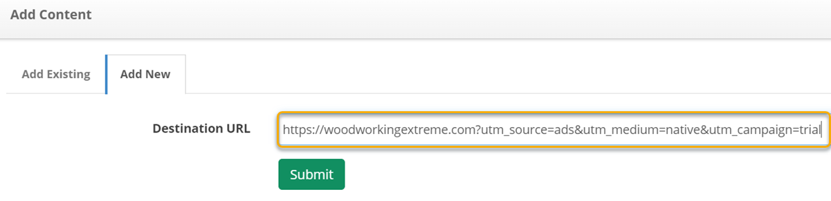 Enter the UTM URL you created in Step 1 as your Content URL as shown below: