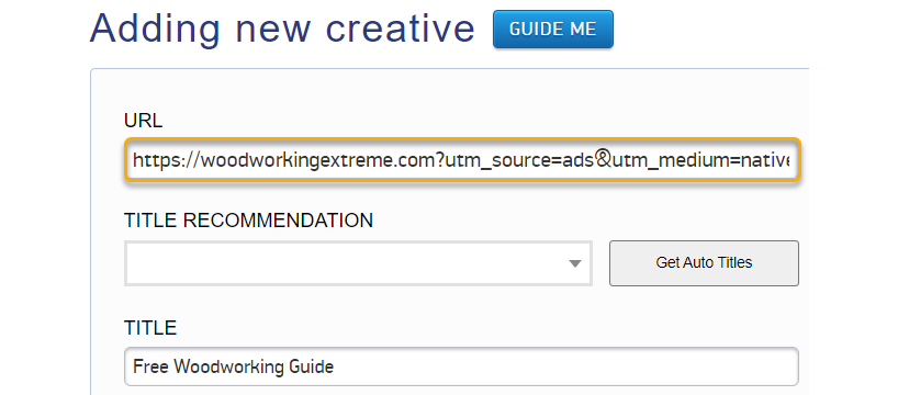 Step 2 – Add Your UTM-Powered URL To Taboola
