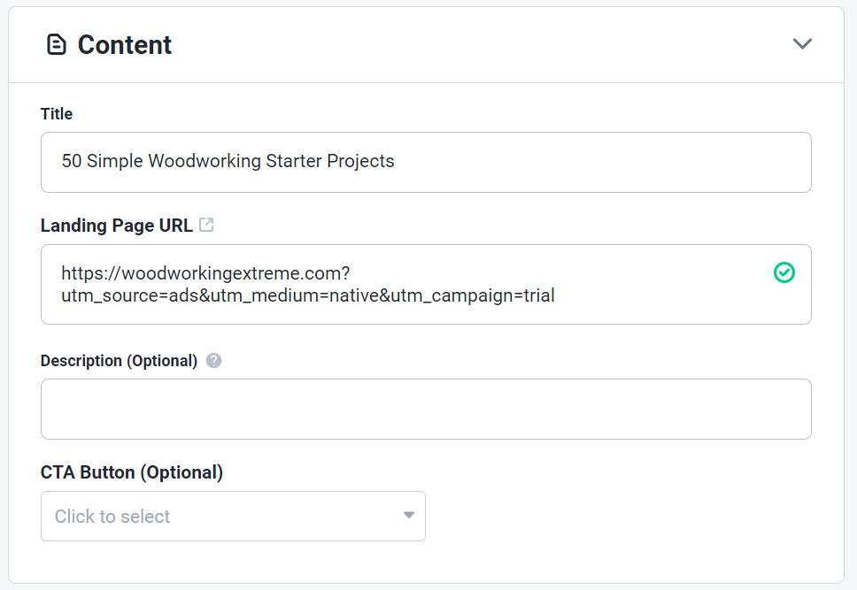 Step 2 – Add Your UTM-Powered URL To RevContent