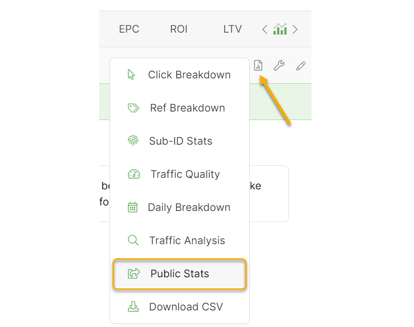 Tip: In the “Public Stats” Settings of your Account Settings, you can customize your public stats pages by adding a custom logo andoptionally displaying a ClickMagick banner that redirects users to your affiliate link.