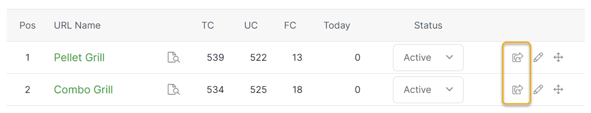 For a Rotator URL, find the URL in your Rotator and click the “Share” link to the right of the URL name.