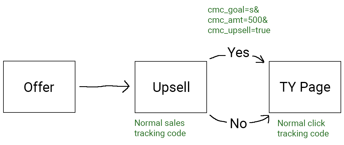 Step 3 – When you redirect people who DO take the upsell to your final “thank you” page with the click tracking code, simply include the necessary “cmc parameters” to track the upsell in that URL.