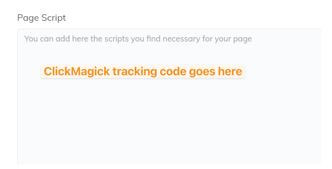 Scroll down until you see “Page Script” and add the tracking pixel in the box shown: