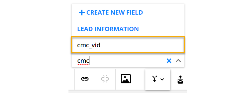 Click on the merge Icon at the bottom of the editor and then choose the custom cmc_vid field listed: