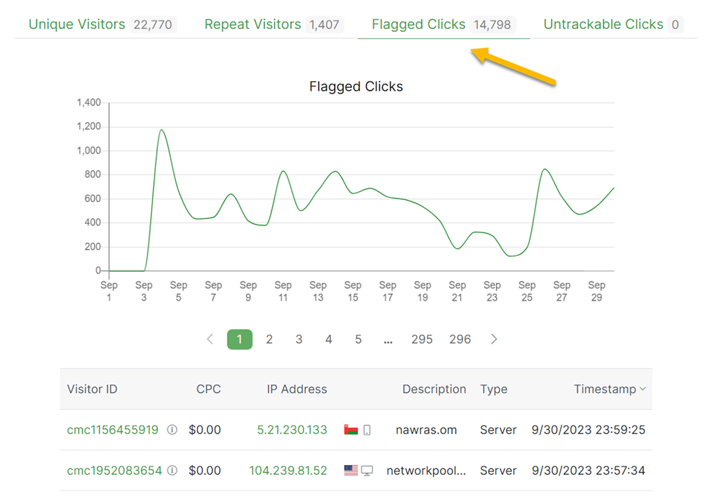 These are labeled as “Flagged Clicks” and you can view them in your click logs at any time …