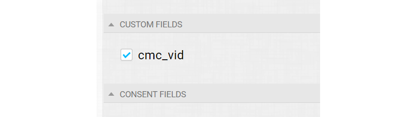 6. Next, scroll down toward the bottom of the settings on the right side and find the section for “Custom Fields.” Find the “cmc_vid” field you created in GetResponse and check the box next to it so it gets added to the form.