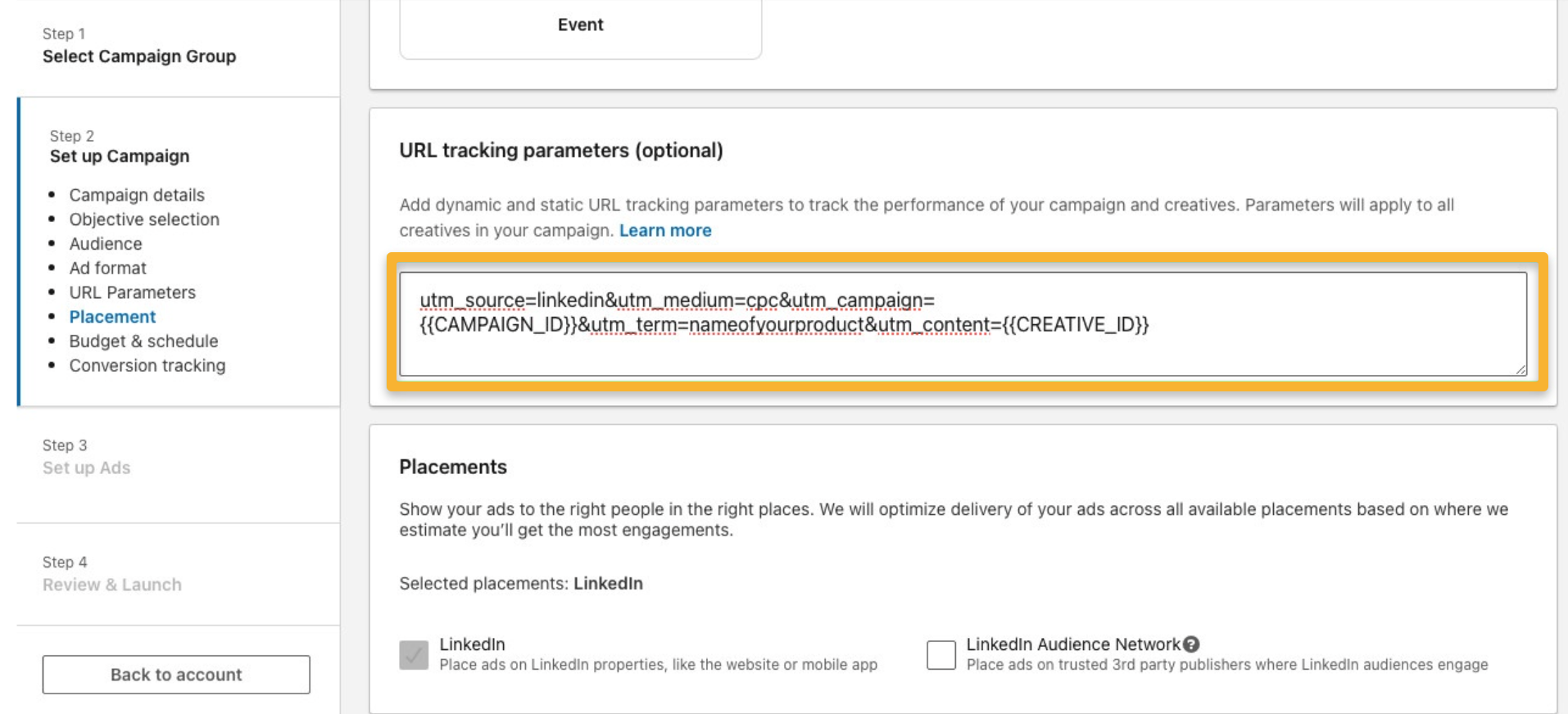 To add this Tracking Template to your LinkedIn Campaign, follow the steps below:
