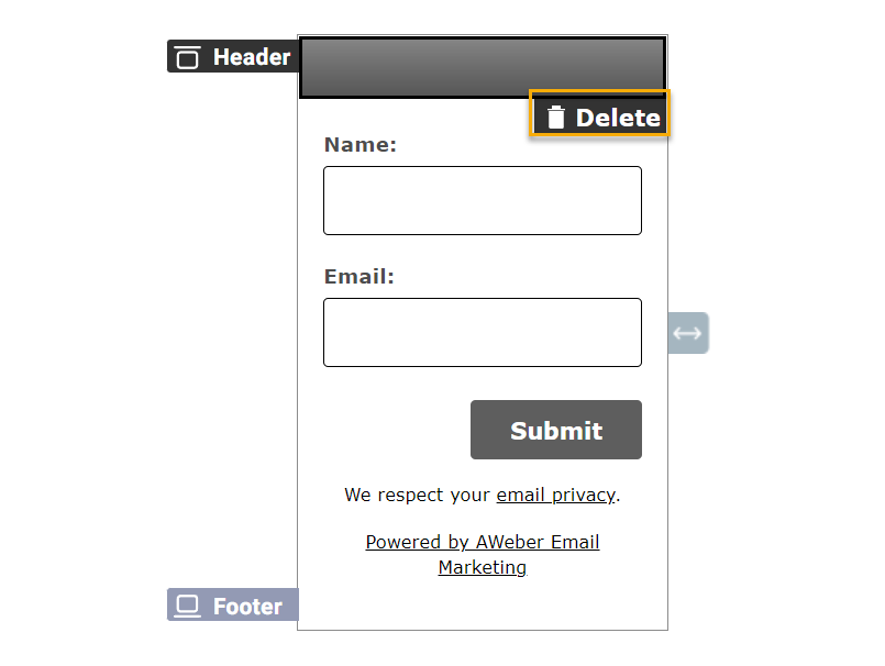 3. Once you’ve picked a form template or decided on the default one, you may want to remove the content in the header and footer of the form. Hover your mouse over each part and choose the delete button at the bottom right of each element.