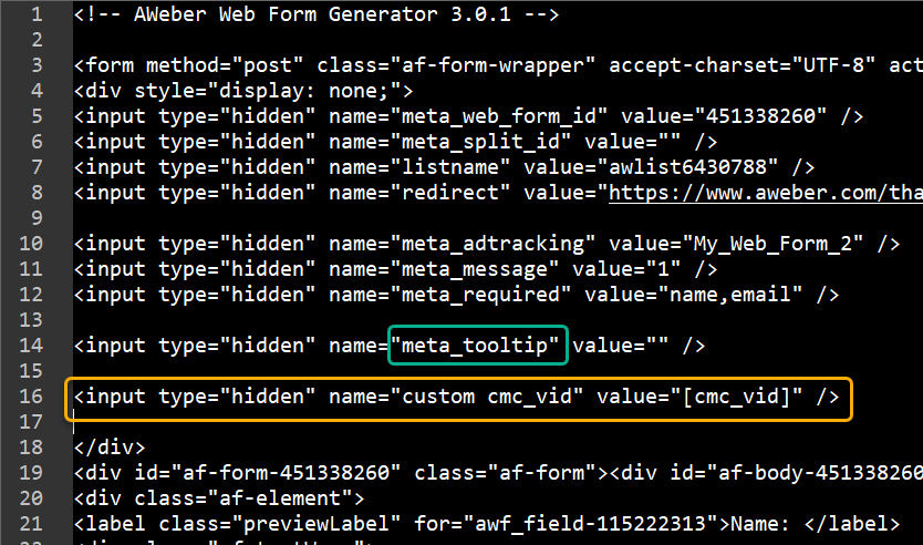 If you already have your custom cmc_vid field ready in Aweber, please follow these steps to create a custom form that includes this cmc_vid field.