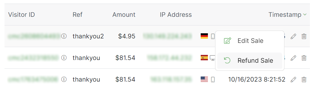 4. Refunds of affiliate sales tracked via Webhook or Postback URL will be processed automatically as long as your affiliate network also sends refund data to your Webhook or Postback URL. All major affiliate networks do this.
