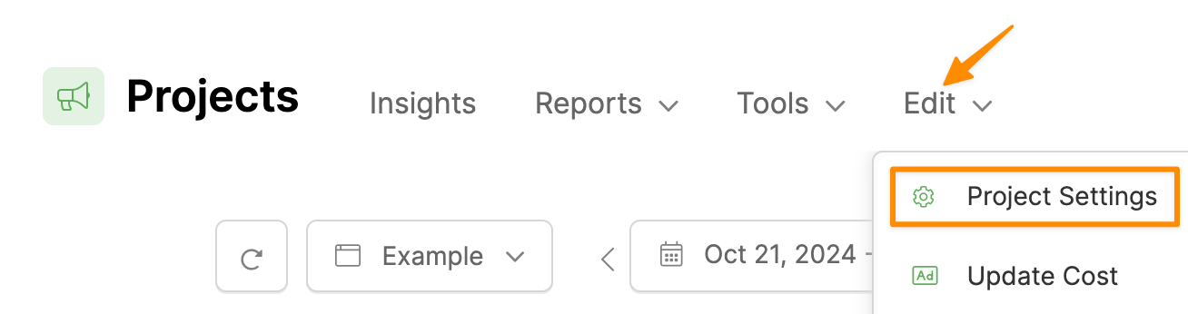 On your Project Dashboard, click on the Edit menu and then “Project Settings”.