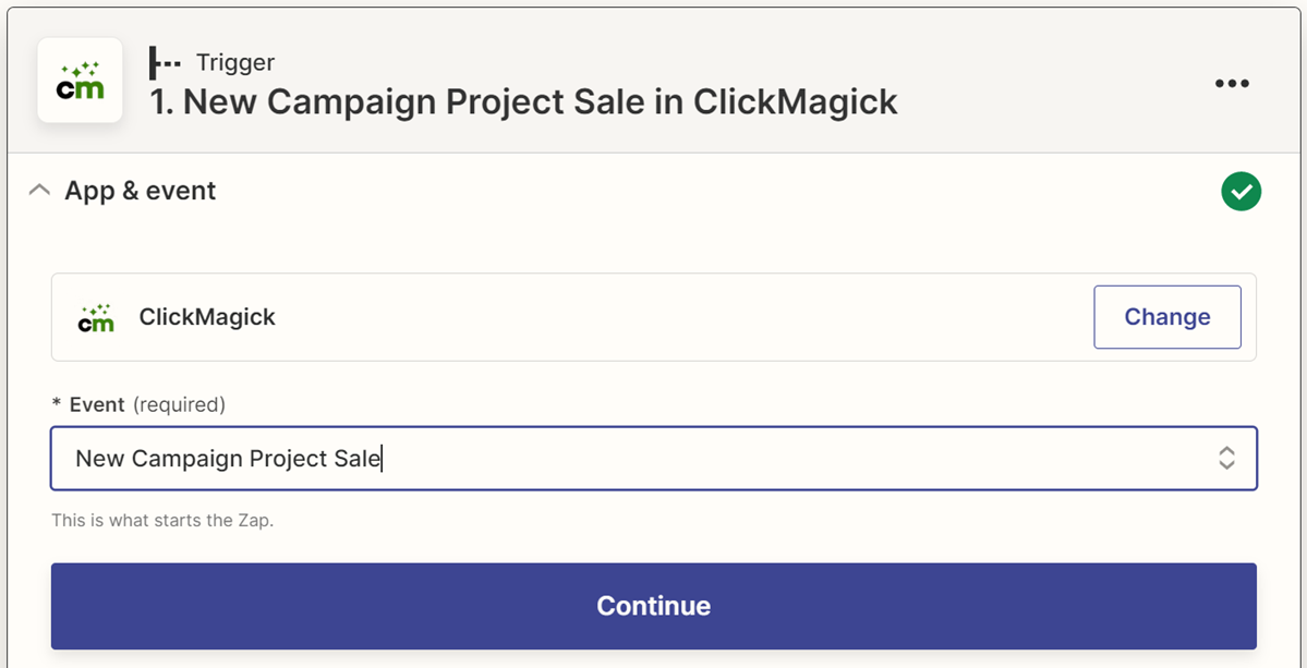 There are lots of ClickMagick “Triggers” in Zapier that you can use in your “Zaps” for Clicks, Actions, Engagements and Sales.