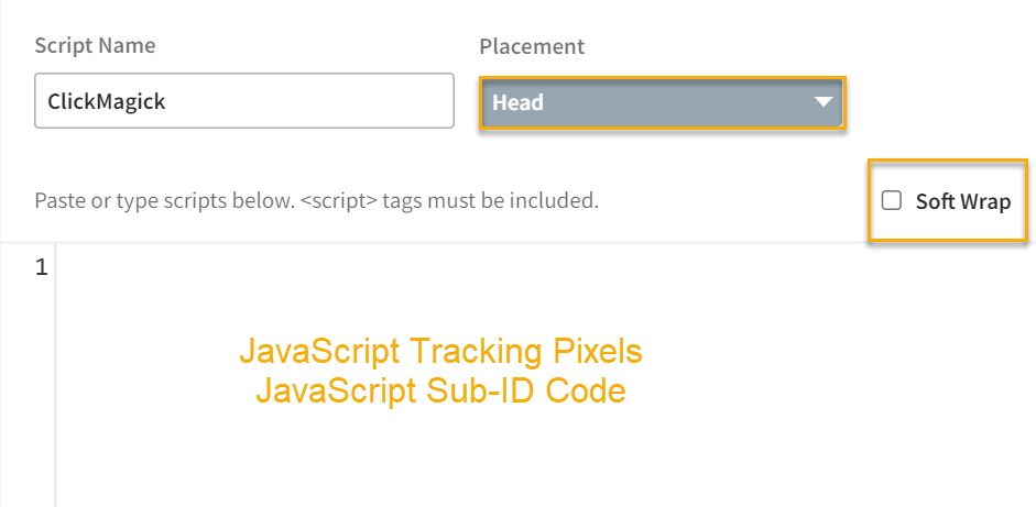 2. Give the script a name, select “Head” for the placement, and make sure you uncheck the “Soft Wrap” box on the right side of that window: