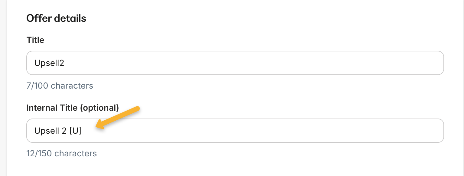 For example, if your upsell was named “Extra Template Pack”, you can rename it to “Extra Template Pack [U]”.