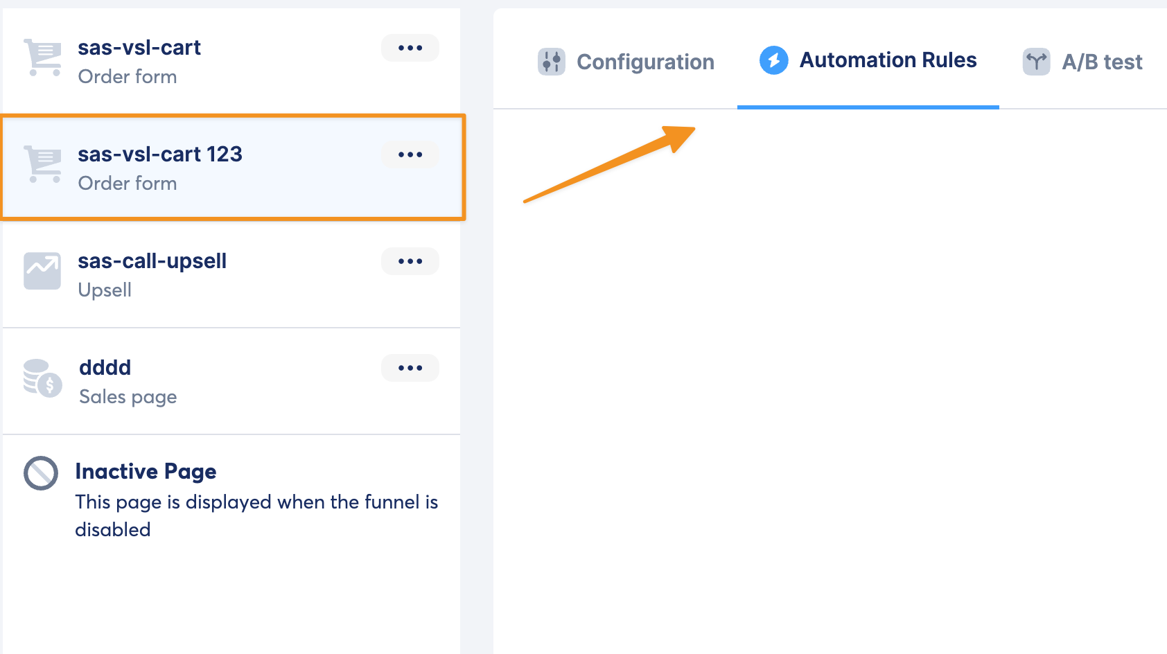 In your Systeme.io account, locate the funnel step where the sale occurs, click on “Automation Rules” and add a new rule.