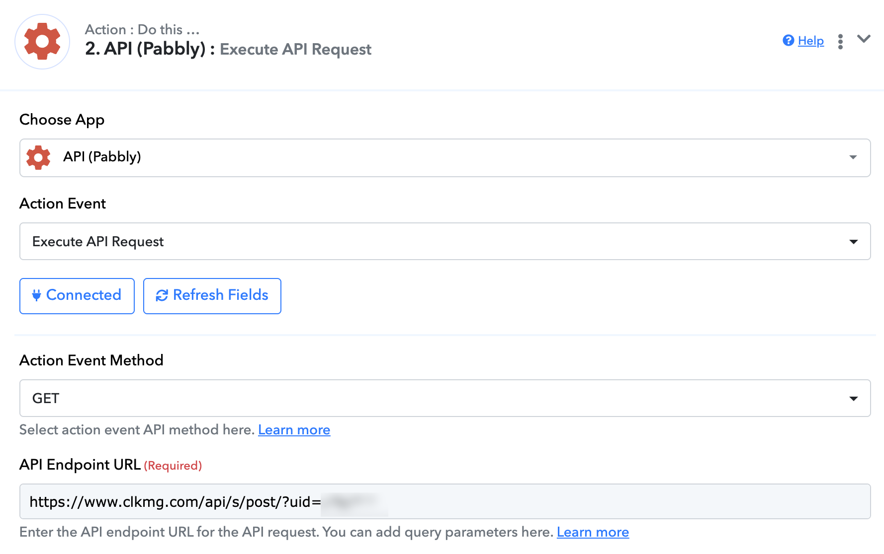 Select “Send Webhook” as the action, paste the URL from Pabbly Connect and save the rule.