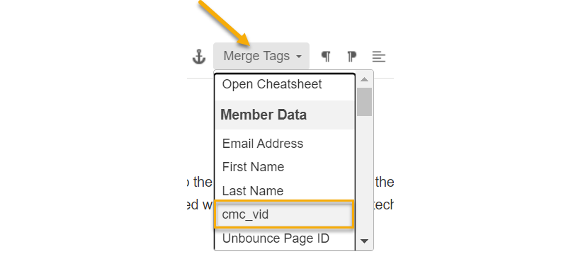 Click on “Merge Tags” in the format bar, and then choose the custom cmc_vid field listed: