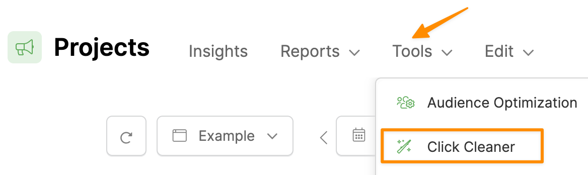 To access Click Cleaner, from your Project Dashboard, select the Tools menu, then Click Cleaner.