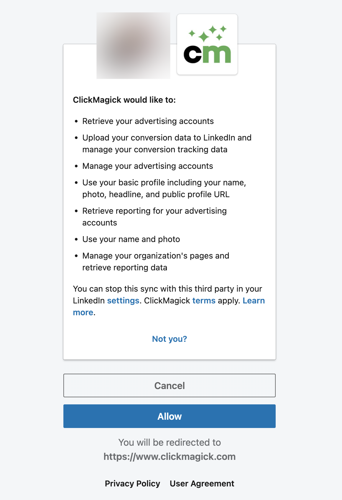 Once you've set this all up, ClickMagick will automatically capture visitor info from your website or online store, and send it along with your conversion data back to your LinkedIn Ads account.