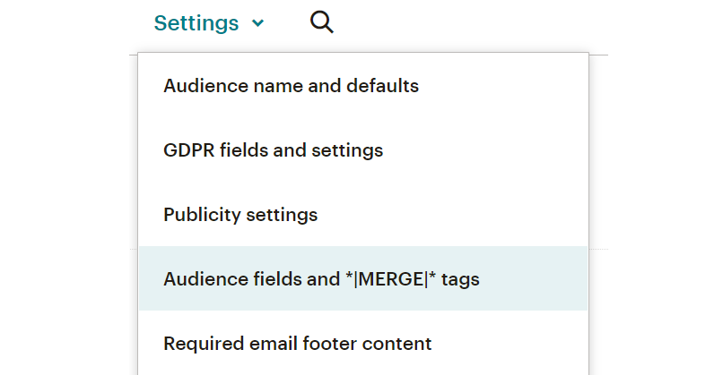 2. Expand the Settings menu and click on “Audience fields and *|MERGE|* tags.”
