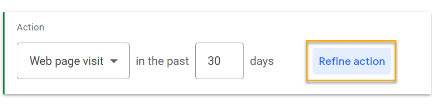 9. For the action, leave it as “Web page visit” and click on the “Refine action” button on the right.