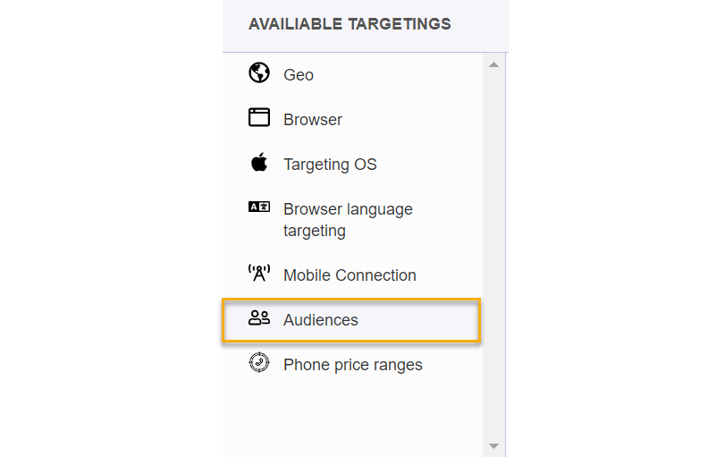 5. While editing your campaign, find the section that says “Available Targetings” and click on “Audiences”.