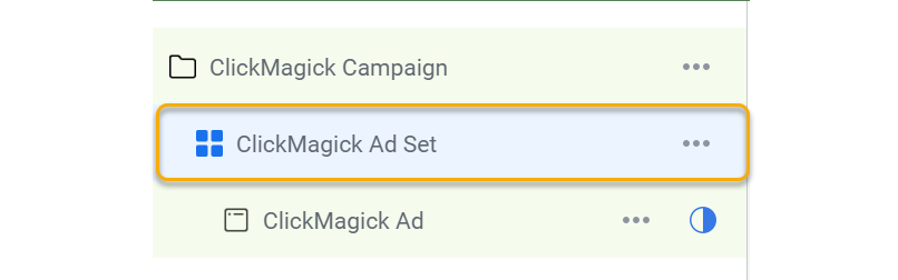 7. Click on the ad set from the list on the left (most likely the middle option if you only have one ad as part of the set).