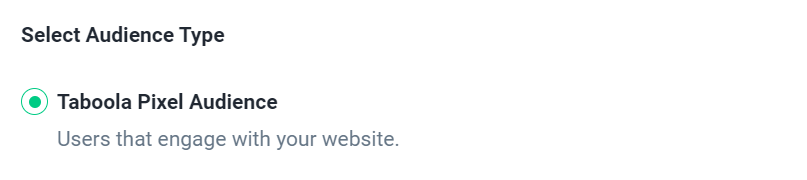 3. Choose the option “Taboola Pixel Audience” and click continue.