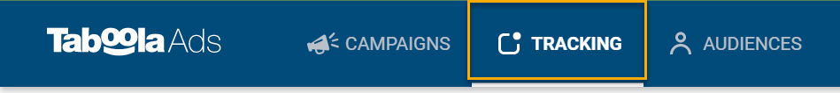 1. In your Taboola Ads dashboard, click on “Tracking” at the top.