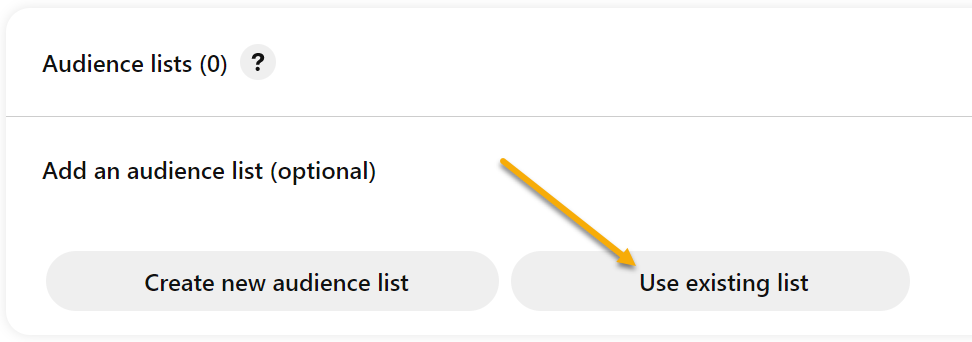 Through the steps, you’ll be brought to a page called “Targeting Details”. Find the section that says “Audience Lists” and choose “Use existing list” from that section.