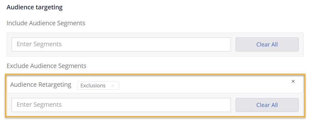 6. In the section right below this, there are two boxes. One for include, and one for exclude. Add your newly created segment to the “Exclude Audience Segments” box.