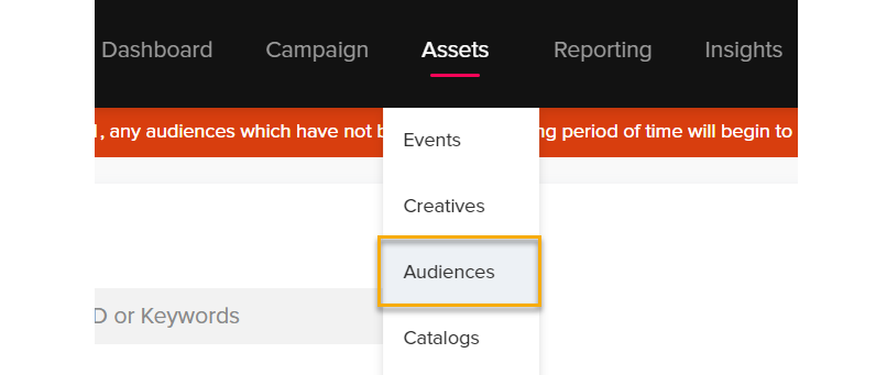 1. Go to your TikTok Ads dashboard, expand the Assets menu and then click on “Audiences”.
